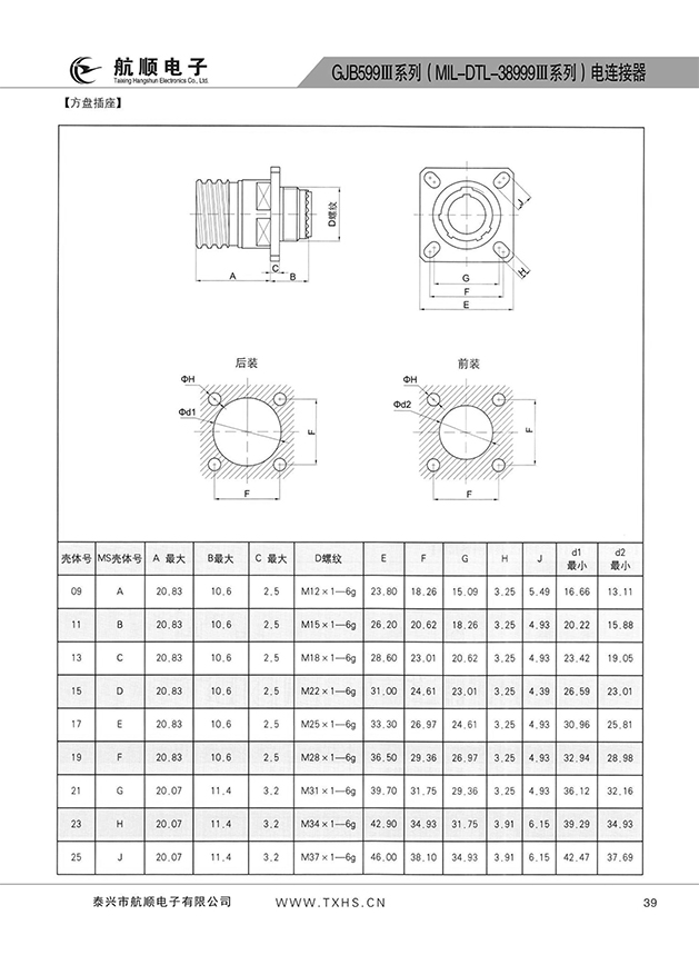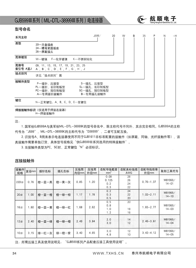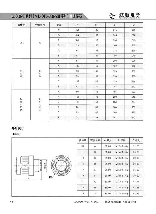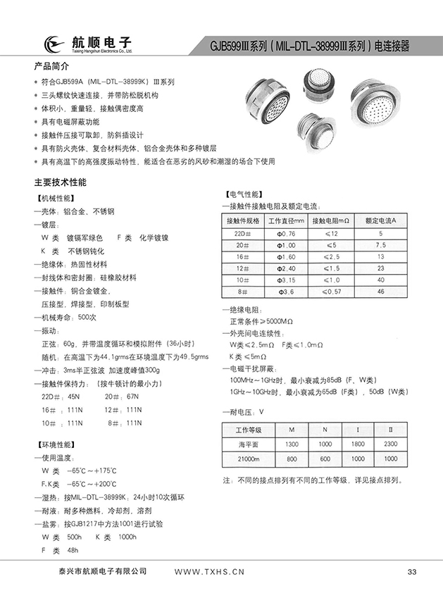 * 符合GJB599A(MIL-DTL-38999K)Ⅲ系列