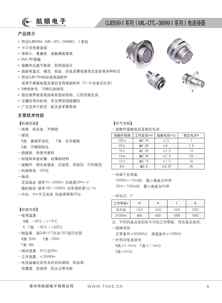 GJB559Ⅰ系列航空插頭