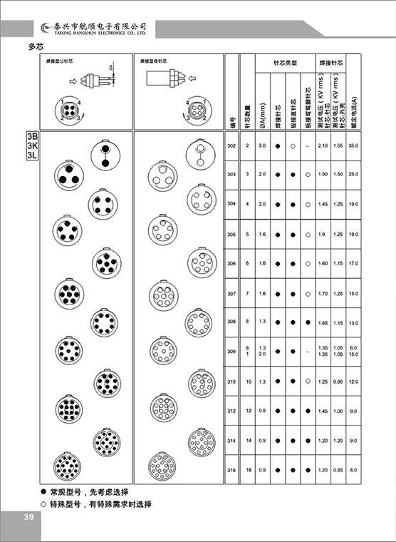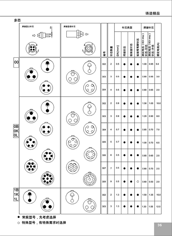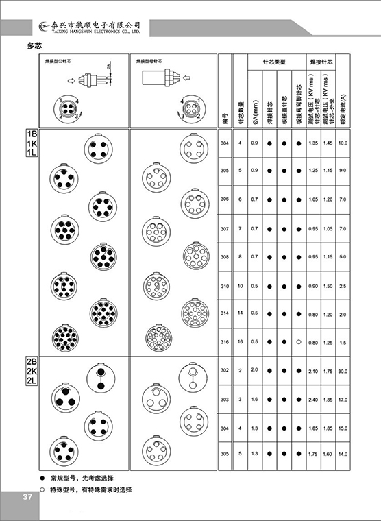 ⑥ 接插件芯數(shù):2、3、4、5.。。。。芯
