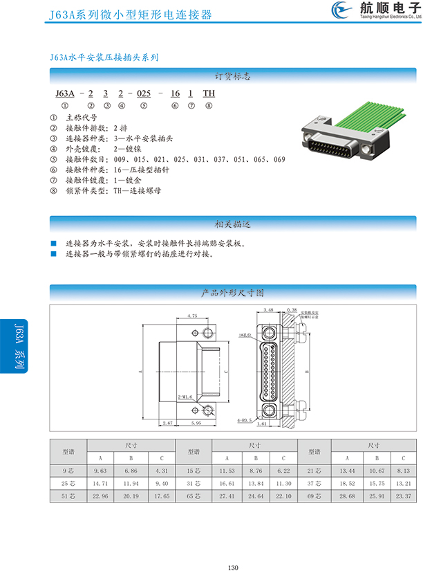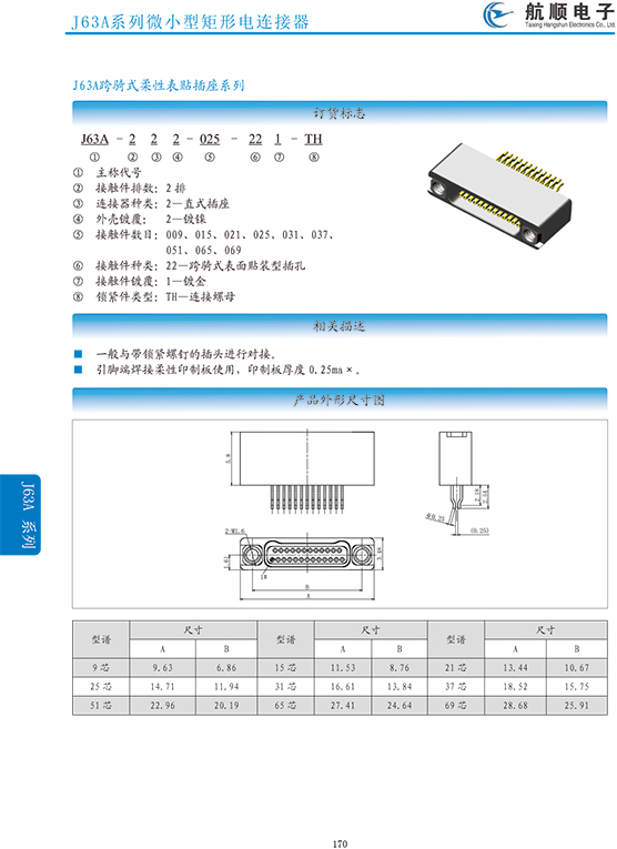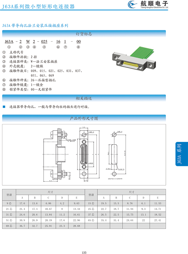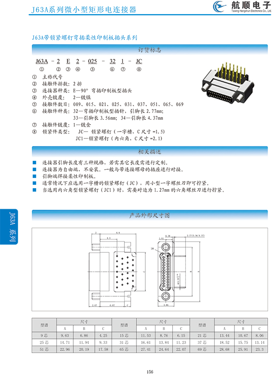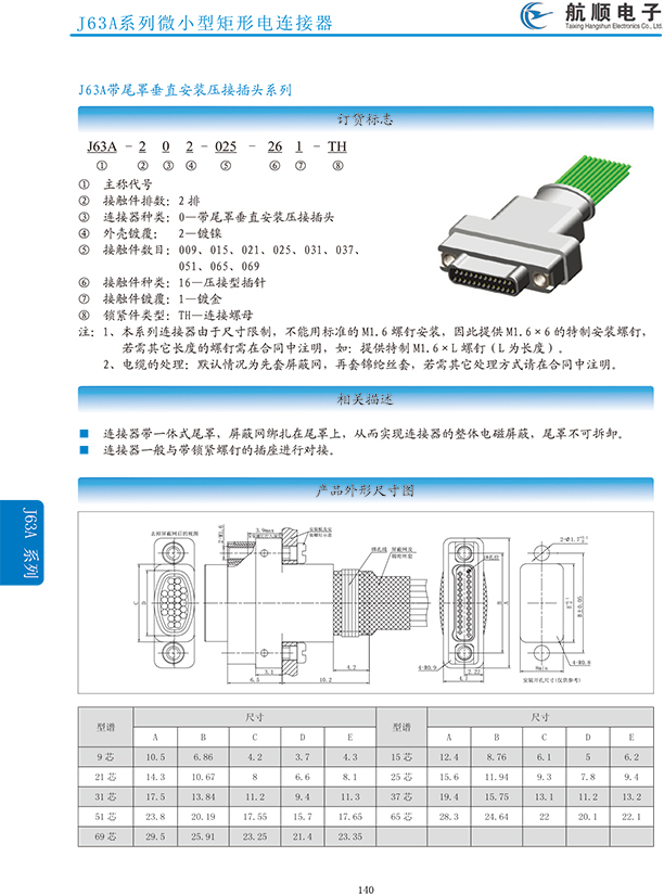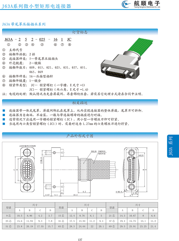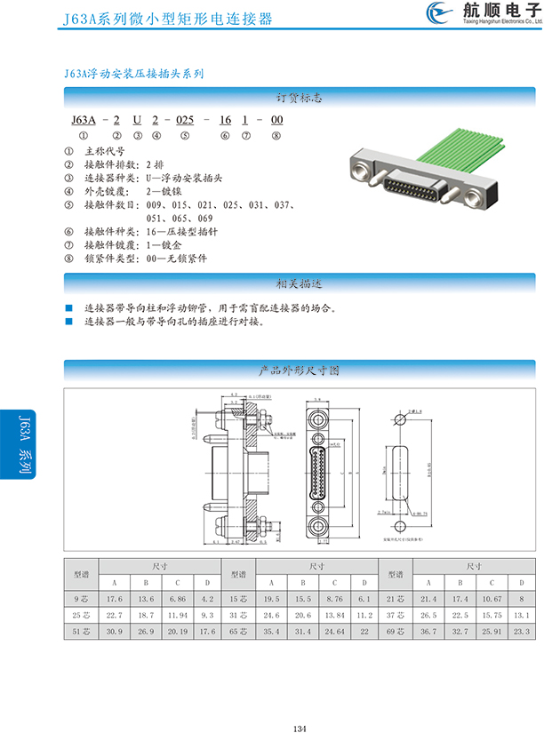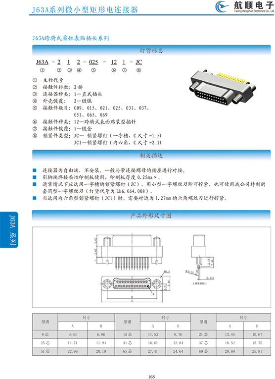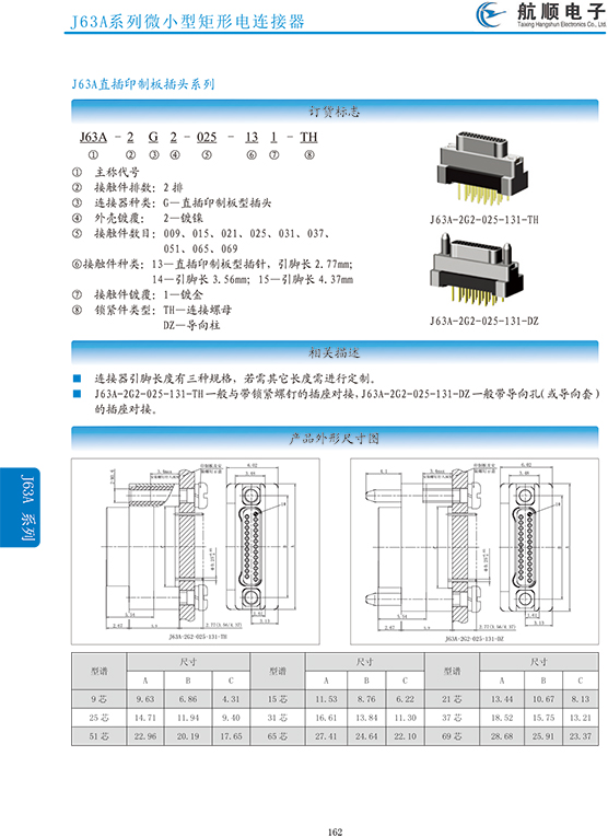 產(chǎn)品特點: 規(guī)格有9、15、21、25、31、37、51、65、69芯; 采用柔性針結構,間距為0.635mm; 占用空間小,頭、座采用螺釘螺母旋合對接,插拔柔和、鎖緊可靠; 產(chǎn)品密度高、體積小、重量輕、可靠性高;