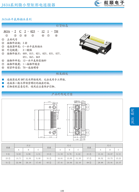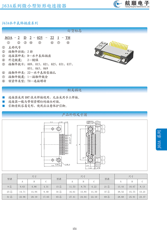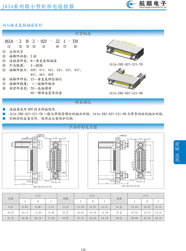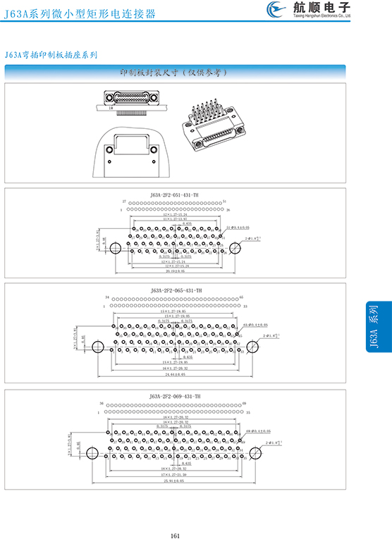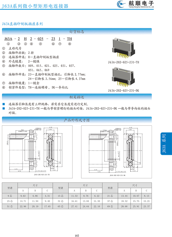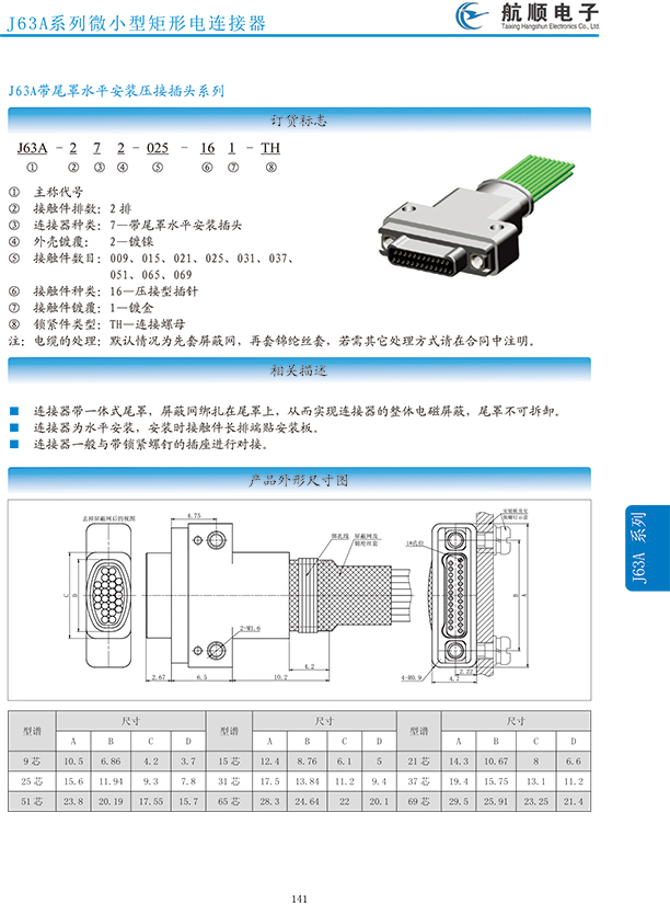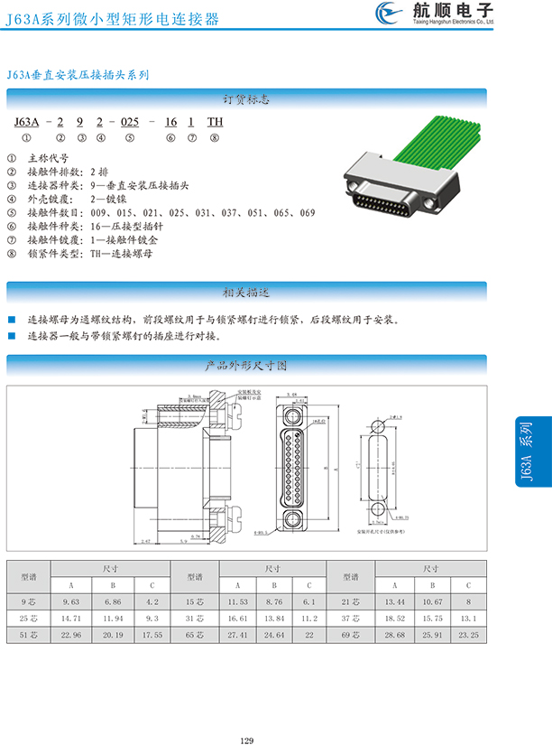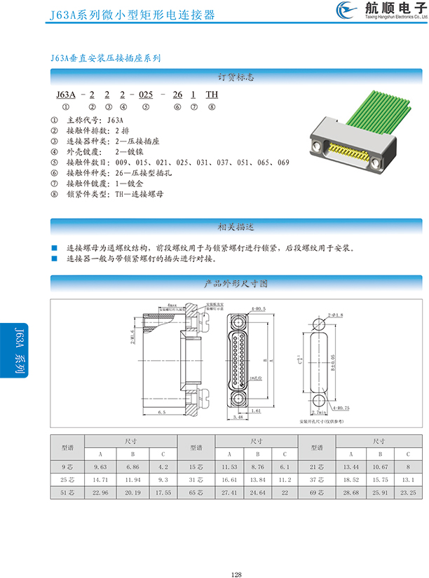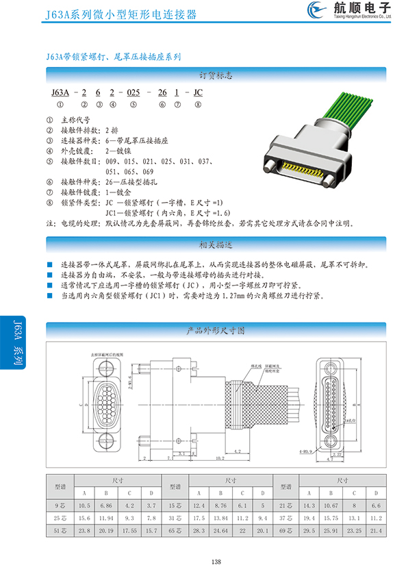 產(chǎn)品特點: 規(guī)格有9、15、21、25、31、37、51、65、69芯; 采用柔性針結構,間距為0.635mm; 占用空間小,頭、座采用螺釘螺母旋合對接,插拔柔和、鎖緊可靠; 產(chǎn)品密度高、體積小、重量輕、可靠性高;