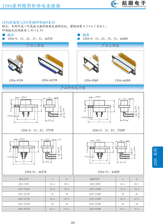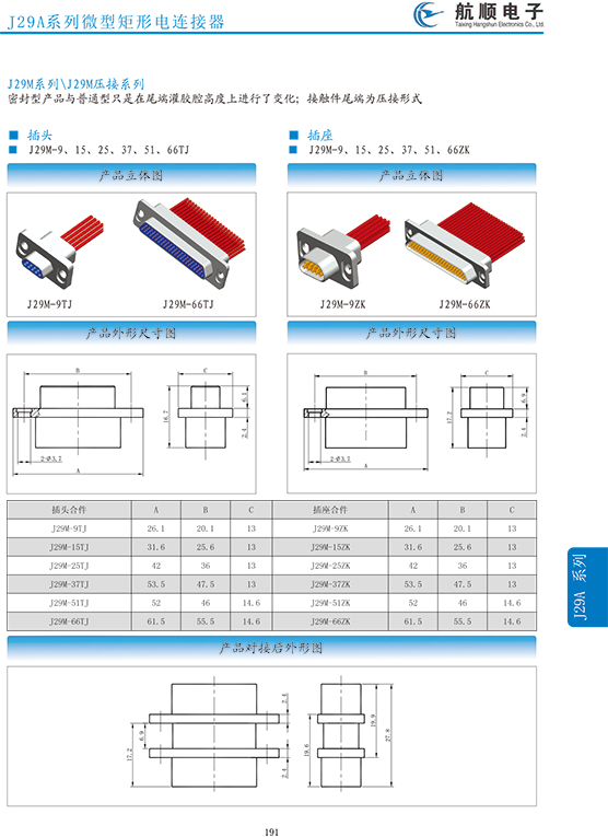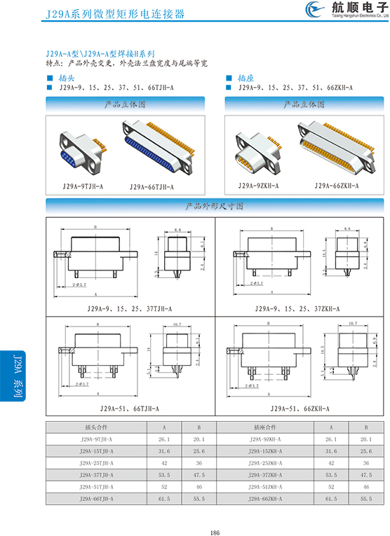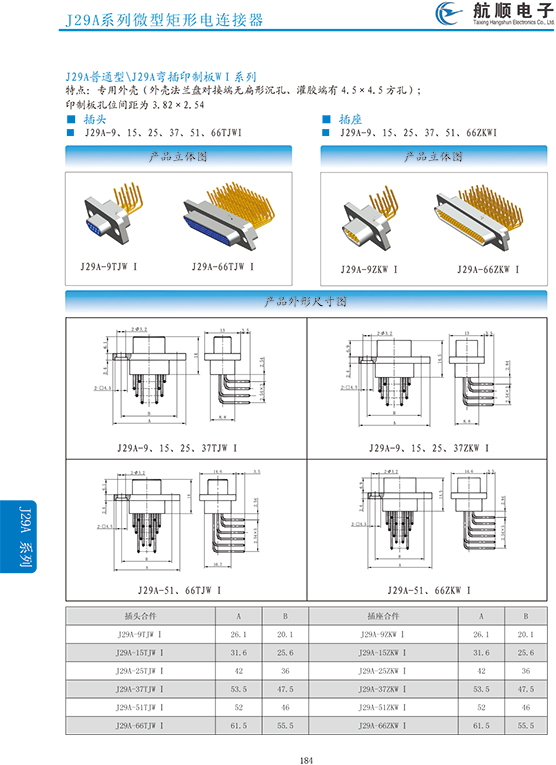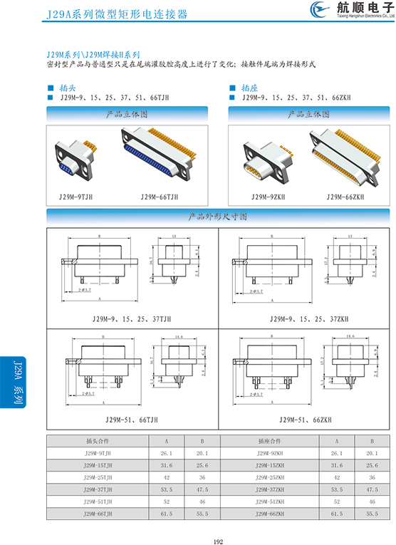 產(chǎn)品特點: 規(guī)格有9、15、21、25、31、37、51、65、69芯; 采用柔性針結(jié)構(gòu),間距為0.635mm; 占用空間小,頭、座采用螺釘螺母旋合對接,插拔柔和、鎖緊可靠; 產(chǎn)品密度高、體積小、重量輕、可靠性高;