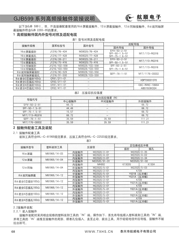 GJB599系列附錄1航空插頭
